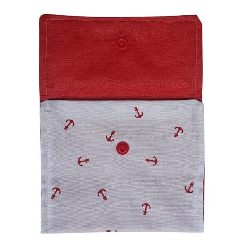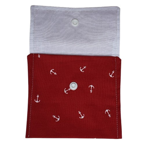 Pochette à savon solide - Ancres blanches sur fond rouge
