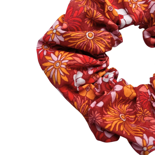 Chouchou - Design 70s Orange et rose et petites fleurs