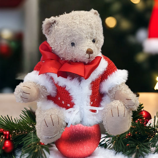 Ourson Noël en peluche en costume rouge