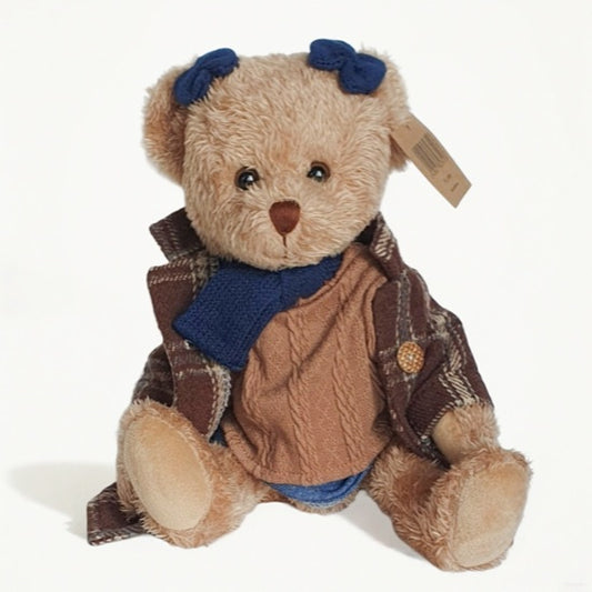 Oursonne en peluche en robe et manteau vintage