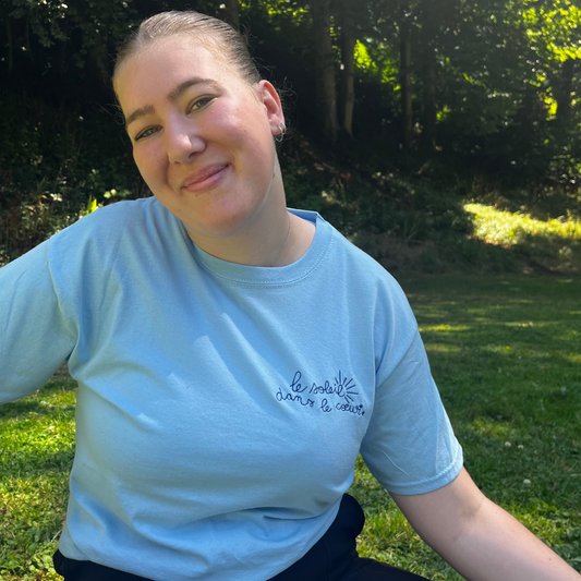 TEE-SHIRT BLEU BRODÉ - LE SOLEIL DANS LE COEUR