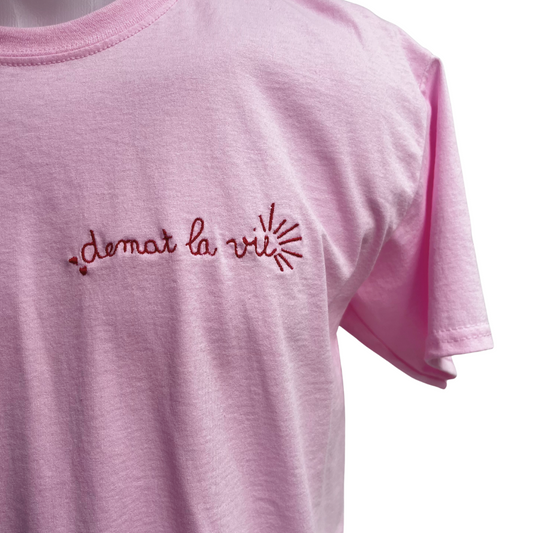 TEE-SHIRT ROSE BRODÉ - DEMAT LA VIE