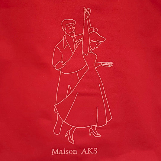 Tote-Bag brodé - Couple dansant rouge bordeaux