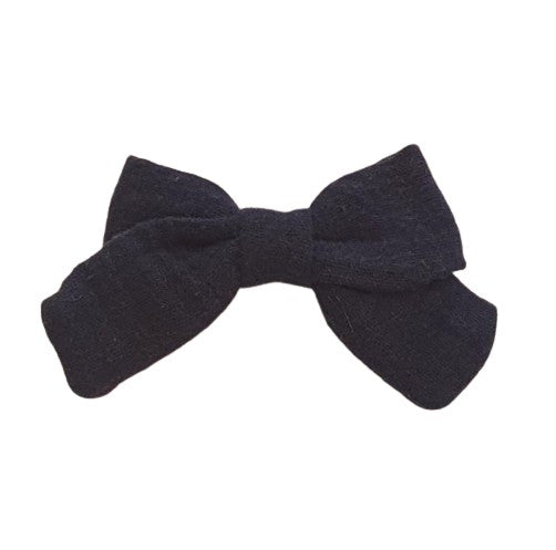 Jolie barrette en forme de nœud croisé montée sur une pince crocodile.
