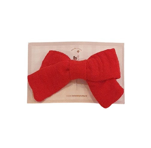 Jolie barrette en forme de nœud croisé montée sur une pince crocodile.