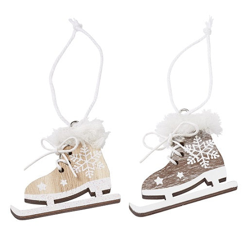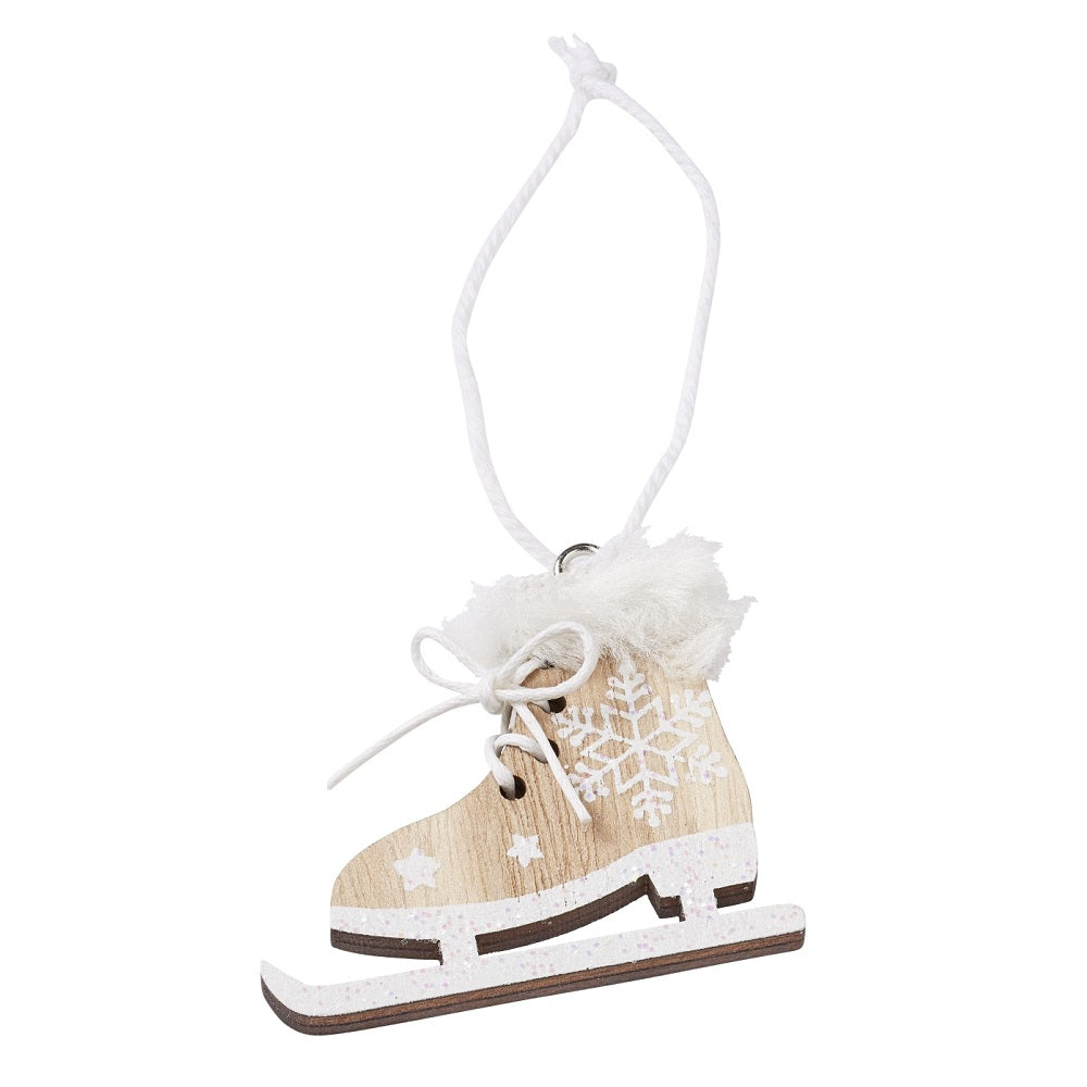 Petit patin à glace en bois fourni avec une corde qui vous permettra de la suspendre dans le sapin.