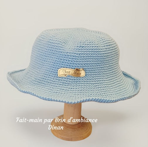 Ce joli chapeau uni bleu azur "fait-main" au crochet est réalisé avec un coton très doux pour bébé.