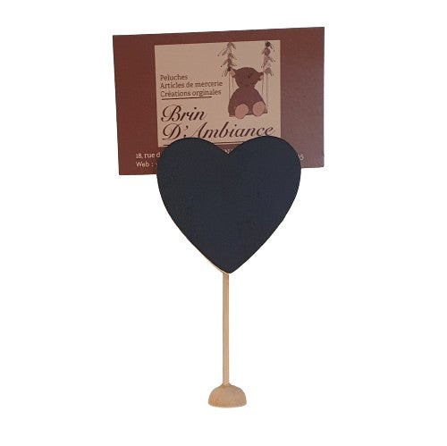Cœur en ardoise avec pince, monté sur un pied en bois.