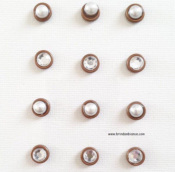 Lot de 12 mini magnets blancs en perles et diamants pour décorer votre frigo ou un pêle-mêle avec fantaisie !