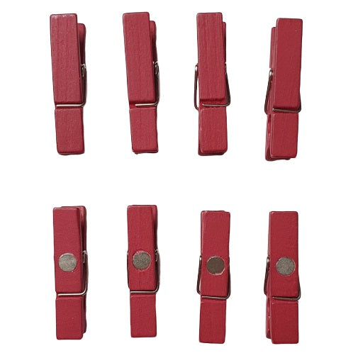 Lot de 8 pinces magnétiques bordeaux en bois pour décorer votre frigo ou un pêle-mêle avec fantaisie !