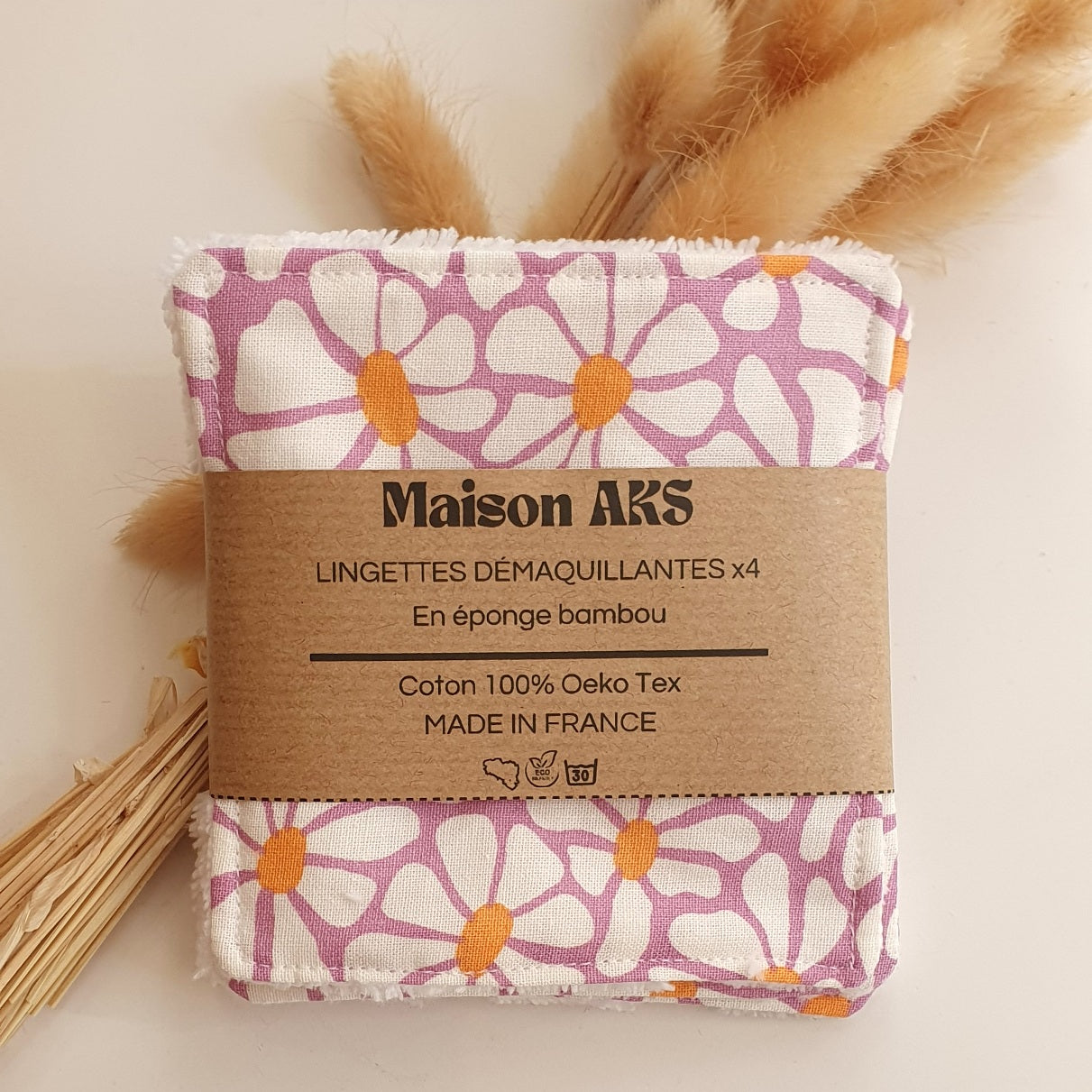4 lingettes démaquillantes lavables en bambou blanc et coton 100% Oeko Tex