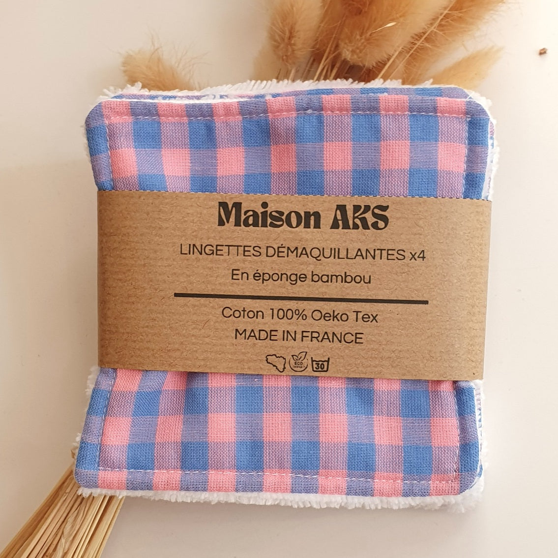 Lot de 4 lingettes - Motif carreaux roses et bleus