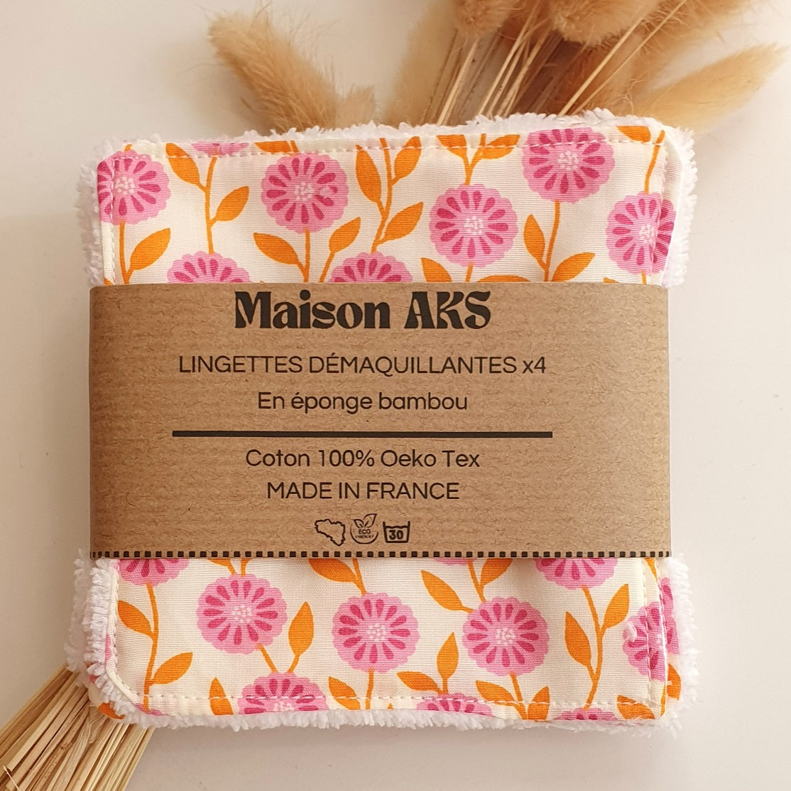 4 lingettes démaquillantes lavables en bambou blanc et coton 100% Oeko Tex