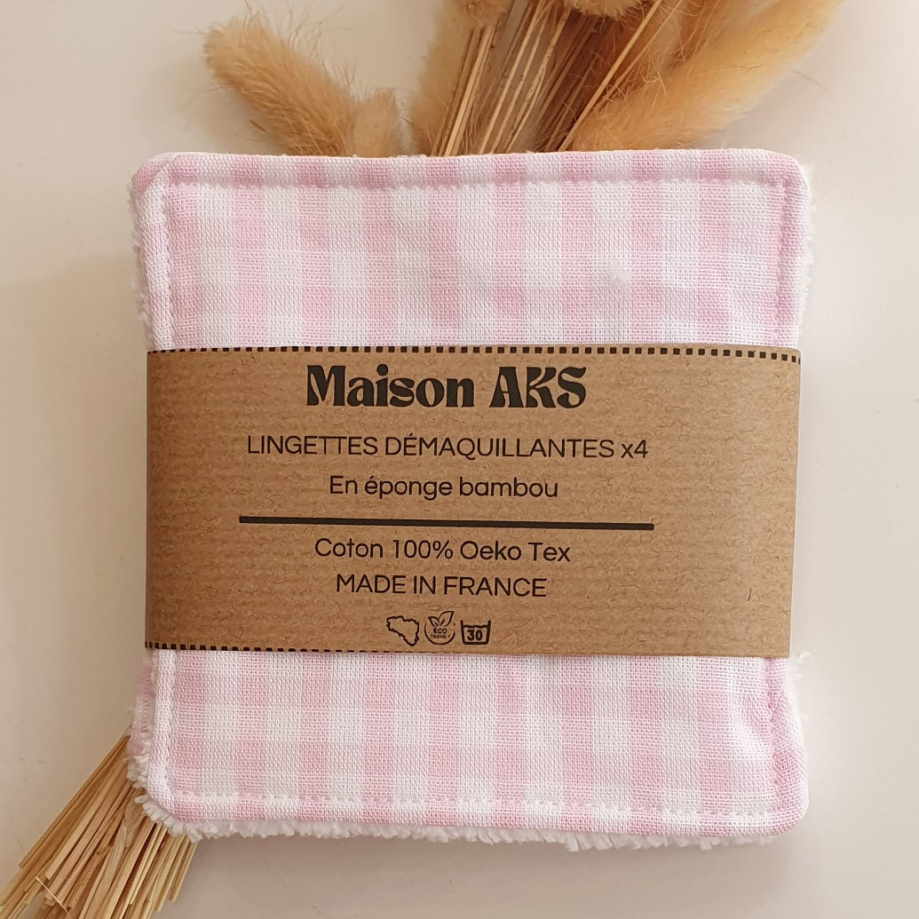 4 lingettes démaquillantes lavables en bambou blanc et coton 100% Oeko Tex