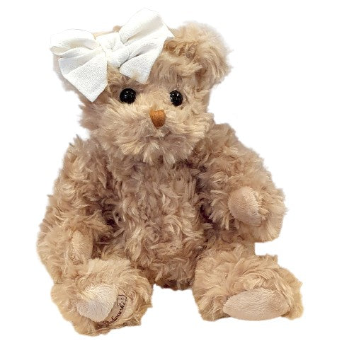 Cette petite oursonne en peluche bouclée marron est d'une remarquable douceur et se prénomme little Girlfriend.