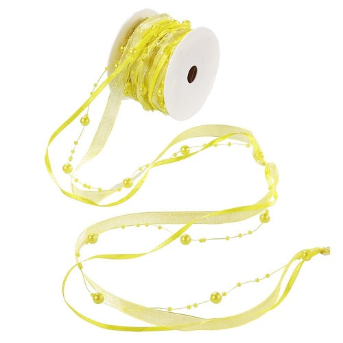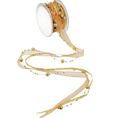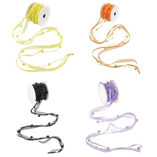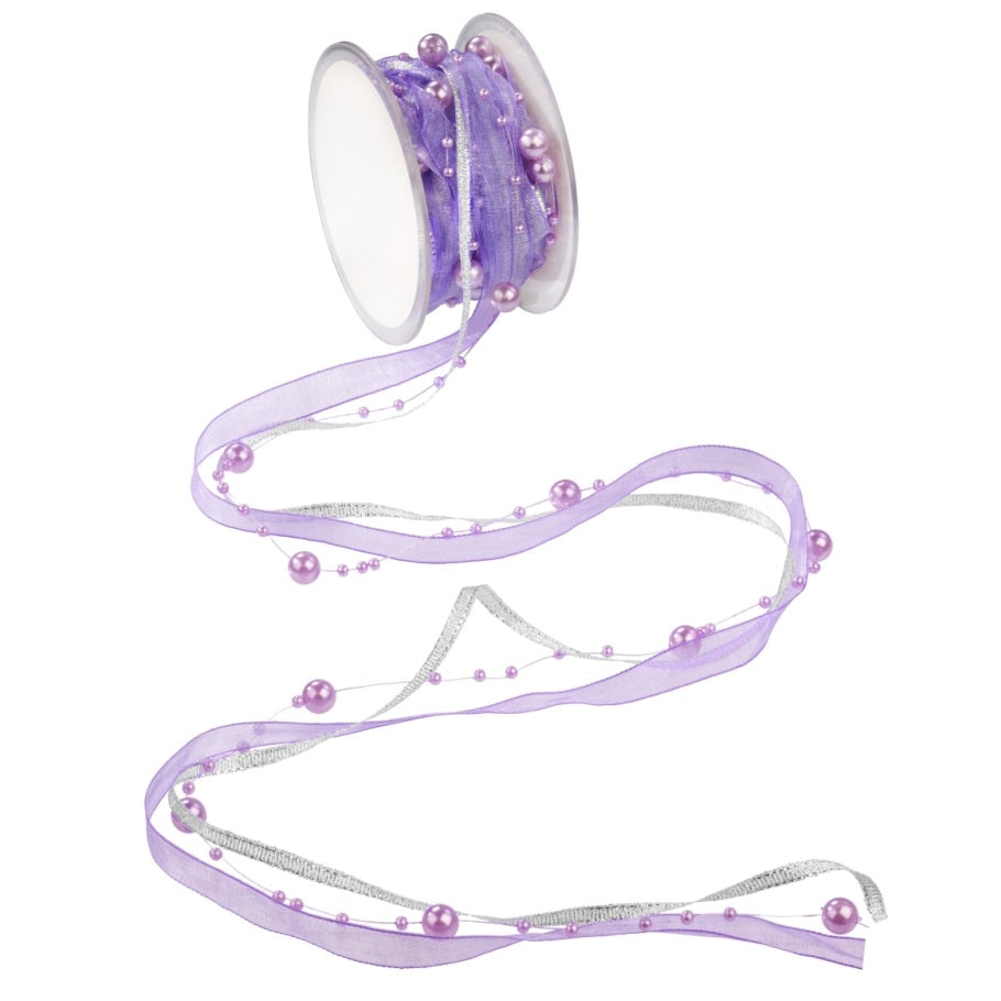Ce ruban triple constitué d'un ruban en organza, un ruban de satin et un ruban de perles sera parfait pour embellir une création, décorer un centre de table ou un bouquet.