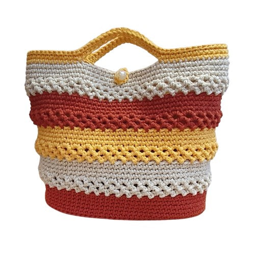 Sac au crochet jaune, terracotta et écru brillant - Fait-main