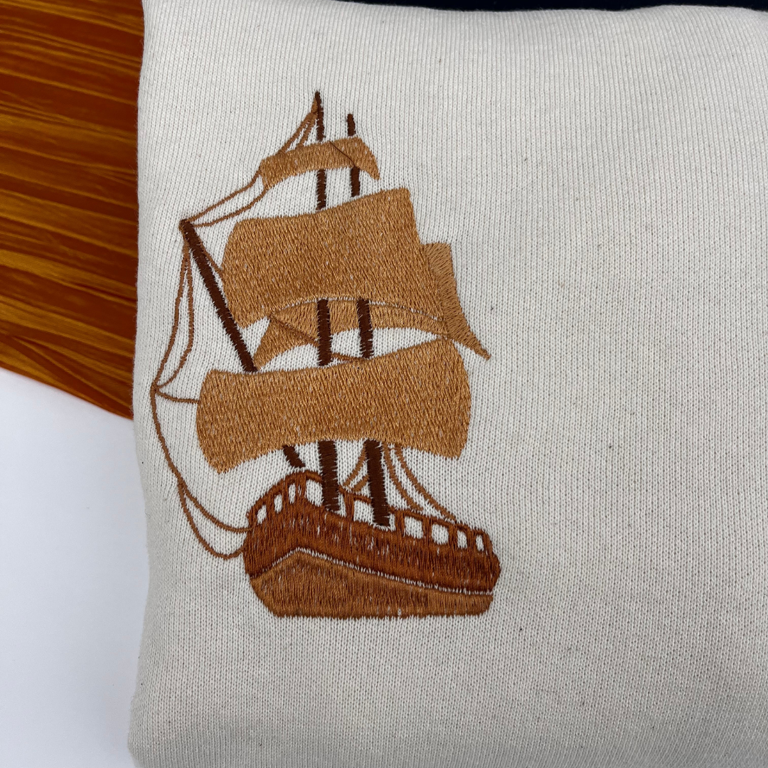 Sweat-shirt sans capuche coloris écru brodé d'un bateau.